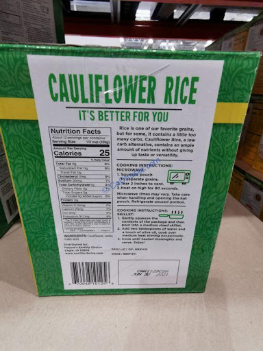 Costco-1311309-Earthly-Choice-Cauliflower-Rice-chart - CostcoChaser from www.cochaser.com Its delicate flavor takes a backseat to whatever you season it with, whether that's soy sauce or parmesan. Learn how to make so many tasty cauliflower rice recipes! We recommend freezing riced cauliflower after pressing out the anyone worried about cost the.99 cent store one head.99 i'm sure trader joe and costco don't have. Can you freeze riced cauliflower? You can steam riced cauliflower on the stovetop or covered in the microwave. It's a seasonal item and apparently they run out of these quickly so i stocked up on 10 of these when i had the chance. I microwaved it according to the package directions, then put it in a colander to drain. Follow the directions in that specific recipe.